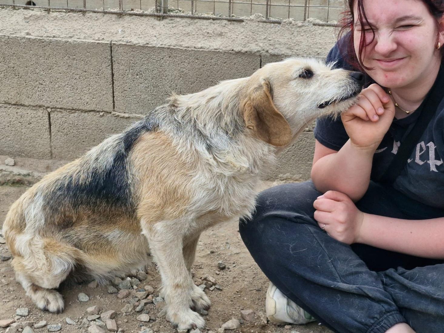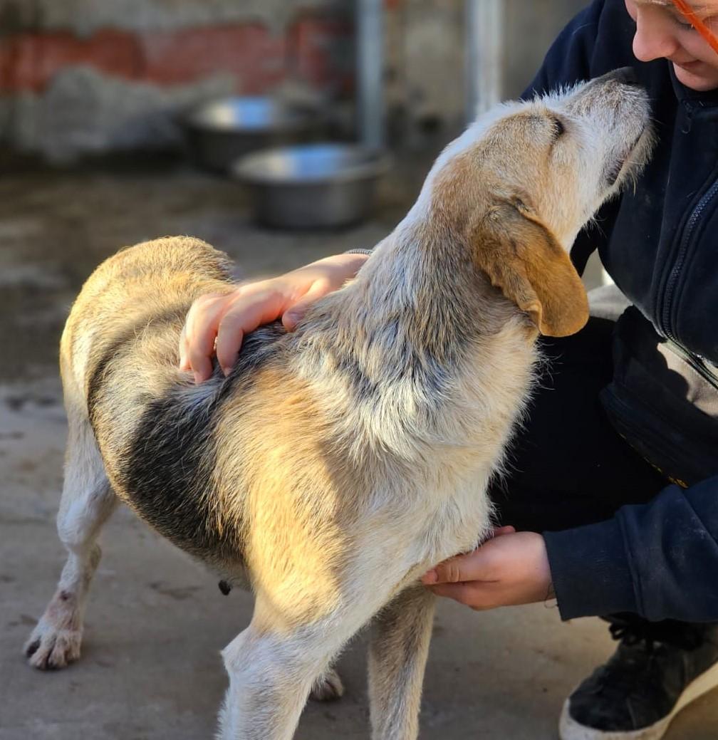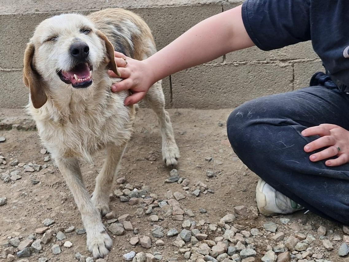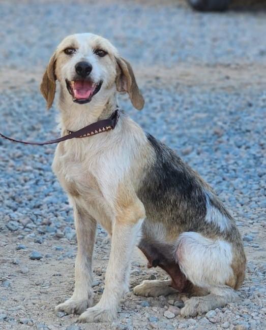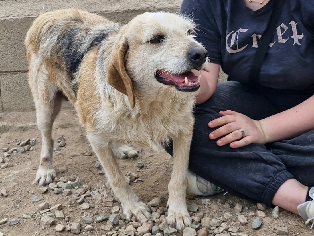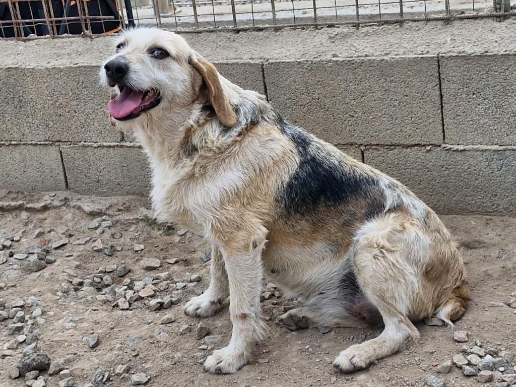 Auch bei Carmensita wissen wir nichts über ihre Vergangenheit. Sie wurde völlig entkräftet und mit einem eingewachsenen Halsband von spanischen Touristen 2023 gefunden. Das Halsband wurde operativ entfernt, die Wunde ist glücklicherweise gut verheilt.