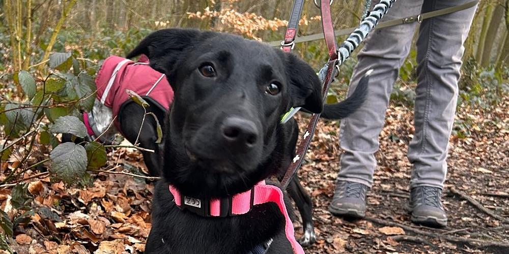 Fragolina ist stubenrein und meldet sich, wenn sie raus muss. Bei den Gassi-Runden ist sie an der Straße immer noch unsicher, aber sobald wir im Wald sind, entspannt Fragolina. Sie würde gerne mit unseren Hunden freilaufen, da Fragolina aber teilweise noch unsicher ist, läuft sie an der Schleppleine. An der Leinenführigkeit arbeiten wir noch, da Fragolina immer gerne in der Nähe unserer Hunde sein möchte.