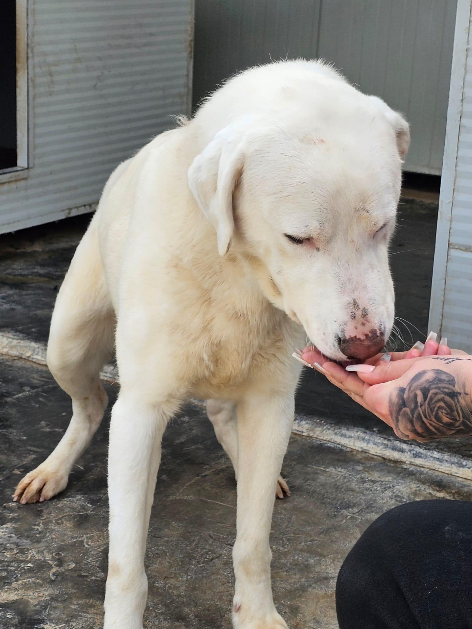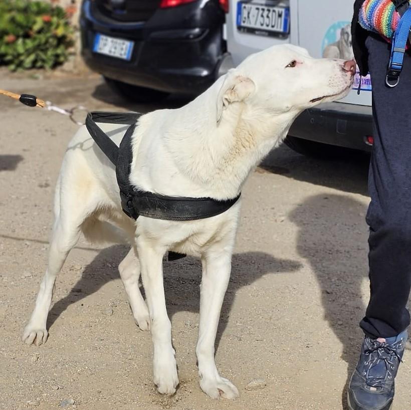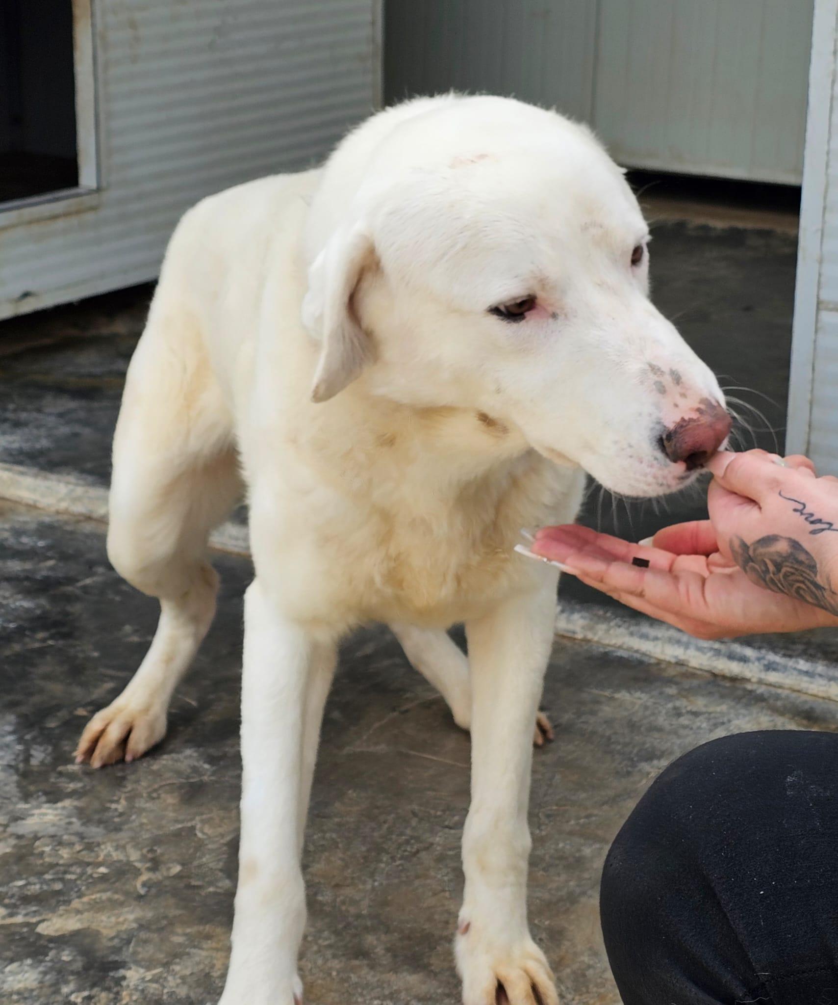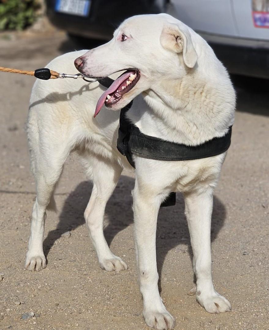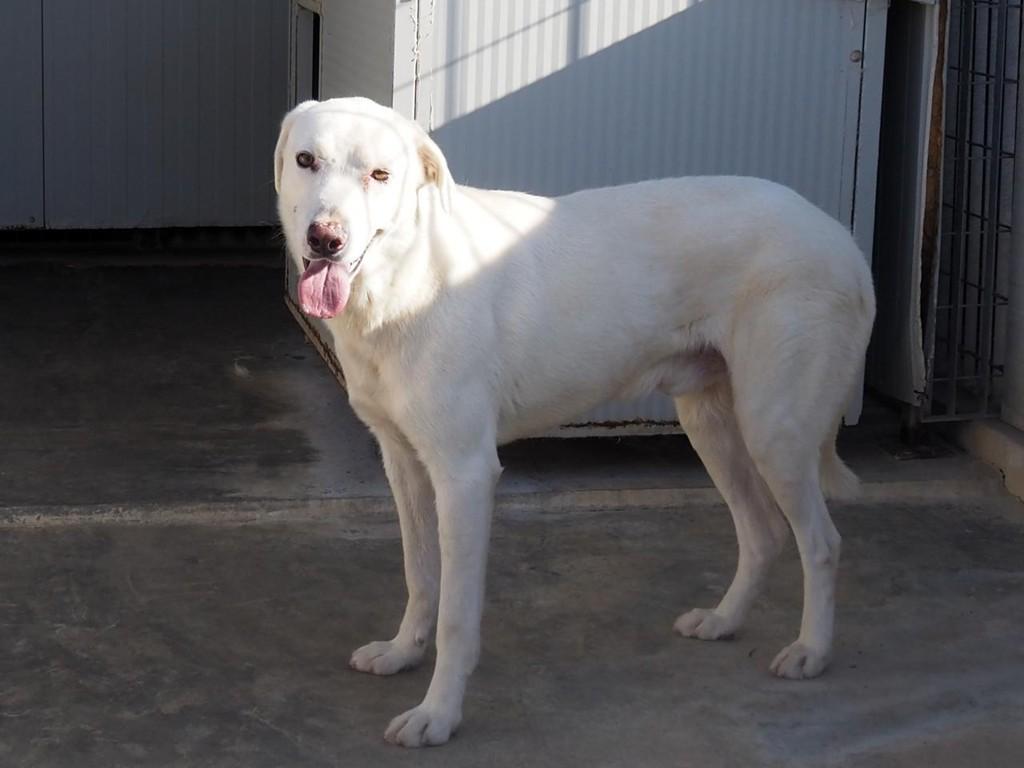 Gitano sitzt nicht mehr bei seiner FGitano – einst ein kleiner, schüchterner Welpe, ist heute ein wunderschöner, stattlicher weißer Rüde geworden. Wir haben ihn im April erneut besucht und konnten beobachten, wie sehr sich sein Wesen in den letzten Monaten verändert hat. Derzeit lebt er mit einem anderen Rüden in einem abgelegenen Gehege im hinteren Bereich des Tierheims L.I.D.A. in Olbia. Obwohl es anfangs Schwierigkeiten in der Vergesellschaftung gab, verstehen sich die beiden mittlerweile sehr gut und harmonieren überraschend schön miteinander.