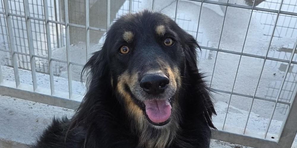 Mel ist ein junger, wunderschöner Rüde mit glänzend schwarzem Fell – vielleicht wurde er deshalb bislang übersehen?