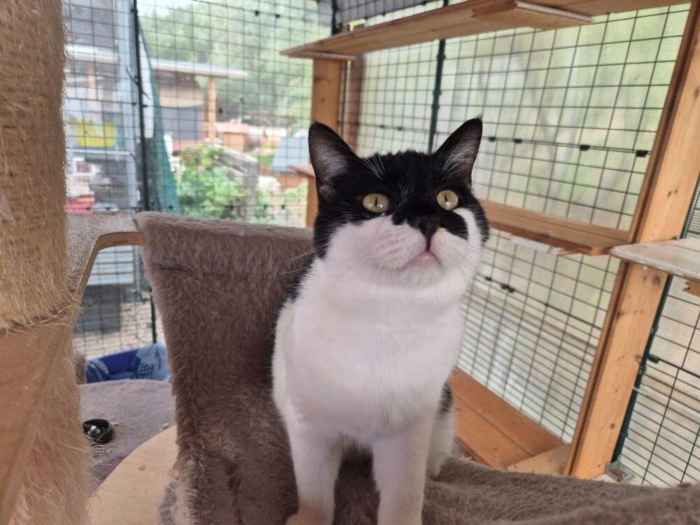 Die einjährige Giorgia mit der ausgeprägten schwarzen Gesichtsmaske, die absolutes Batwoman Potential hat, wartet nun sehnsüchtig darauf, dass sich liebe Menschen für sie melden, die sie in ihre FIV-WG aufnehmen möchten und ihr einen geschützten Freigang bieten können. Dies wäre mindestens ein ausreichend großer, eingenetzter Balkon, eine vernetzte Terrasse oder ein Freigehege. Am Allerschönsten aber wäre ein katzensicherer Garten.