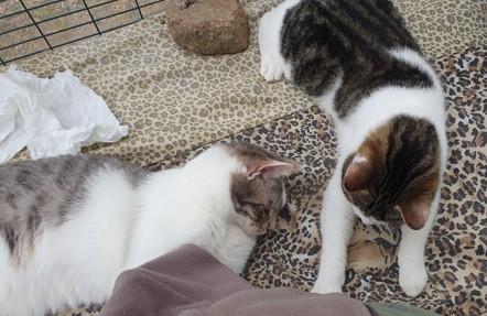 Und noch besser ist, dass Manolo und Manolito es jetzt auf eine erfahrene Pflegestelle nach Deutschland geschafft haben. Manolo hat einen kleinen Moment gebraucht, um mit der neuen Situation klar zu kommen, hat sich aber dann ganz schnell bei seinem neugierigen Brüderchen abgeschaut, was man alles so entdecken kann und dass auch hier die Menschen ganz toll streicheln können. Ruckzuck wurden alle Hemmungen abgelegt. Streicheln bitte, ganz viel streicheln! Manolito kann sich auch prima mit sich selbst beschäftigen, hat einen Riesenspaß mit Spielmäusen und bringt seine Begeisterung über das neue Leben auch mit Liebesbissen und Abschlecken der Pflegemama zum Ausdruck. Wenn das nicht mal tolle Familienkatzen sind! In Kürze werde ich Ihnen mehr berichten.