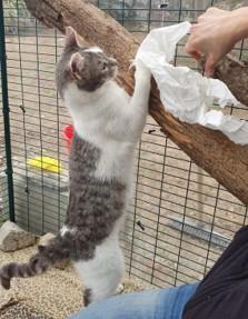 Wir haben im April die beiden süßen Buben im Tierheim auf Sardinien besucht und waren total positiv überrascht. Im Freigehege waren sie verspielt, neugierig und super sozial mit den anderen Katzen. Das sind doch beste Aussichten! Manolito tänzelte um uns herum, untersuchte alles und lies sich gerne durchknuddeln. Manolo spielte gerne, wenn er nicht gerade mit einem der Katzenmädels kuschelte. Und gestreichelt werden ist schon schön, fand er. Ippolita, ihre Mama, die auch bei uns in der Vermittlung ist, wäre stolz auf die beiden.