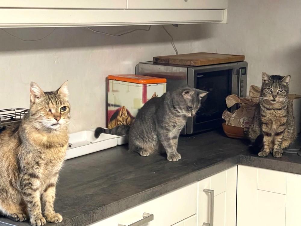 Pupi konnte zwischenzeitlich schon in seinem Tempo das Haus erkunden und genießt es, wenn er ordentlich bekuschelt wird. Er ist ein lieber Kerl, der von seinen deutlich älteren Mitkätzinnen in deren Mitte genommen wird. Nach anfänglichem Gebrumme und ein paar Fauchis hat sich das Team schon gut arrangiert.