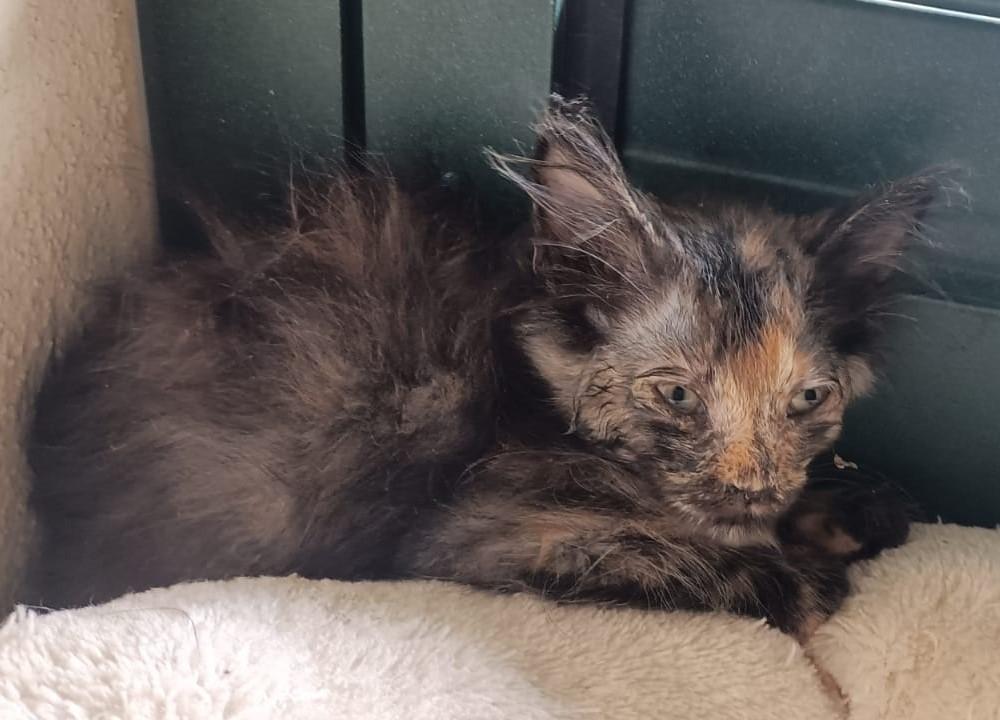 Diese drei kleinen Schwestern verdanken ihr Leben einer beherzten Touristin auf Sardinien, die tagelang darum gekämpft hat, die schwer an Katzenschnupfen erkrankten Katzenkinder zu bergen. Sie entdeckte sie beinahe zufällig auf einem verlassenen Grundstück, zusammen mit ihrer Mutter und noch zwei weiteren Geschwistern, von denen eines bereits gestorben war. Das Gelände war sehr unübersichtlich und es befanden sich noch viele, weitere Katzen jeden Alters dort, teilweise ebenfalls in bedauernswertem Zustand.