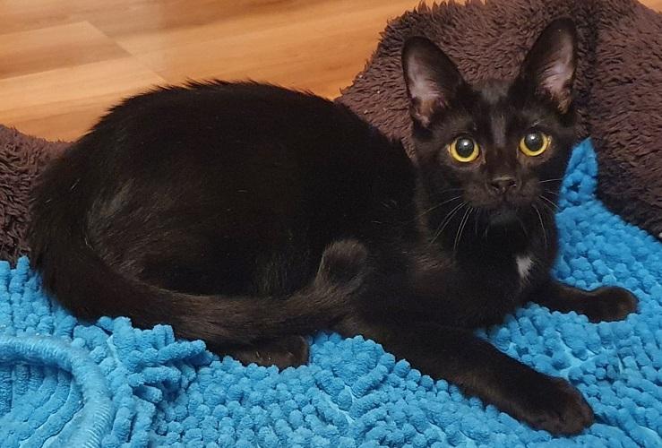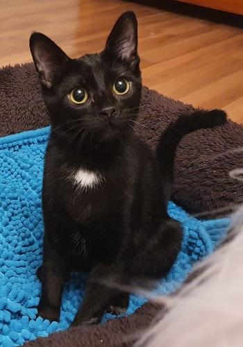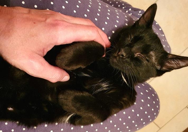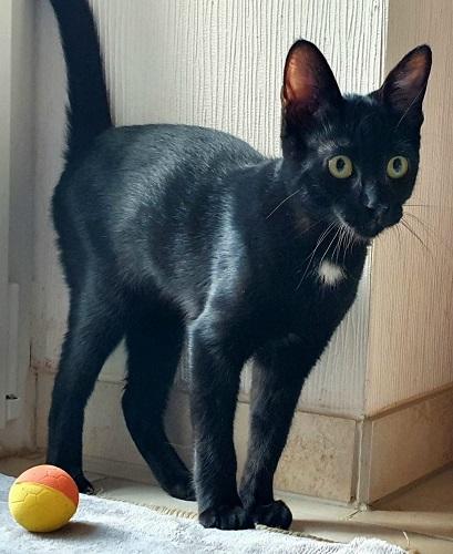 Tito ist bei seiner liebevollen Pflegestelle in Bayern angekommen. Nur wenige Stunden später berichtet die Pflegemama, dass der Kleine sehr munter und verspielt ist und nicht genug Liebe und Streicheleinheiten bekommen kann! Den vorhandenen Hund findet er auch klasse. Vom Körperbau her scheint Tito ein Oriental-Kurzhaar-Mix zu sein, er hat die feinen, langen Glieder einer Siamkatze.