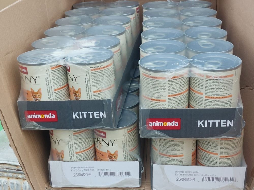 Dank Ihrer Hilfe konnten wir 2025 mehrfach dringend benötigtes Hunde- und Katzenfutter sowie Katzenstreu im Wert von 6.440 Euro an unser Partnertierheim schicken.